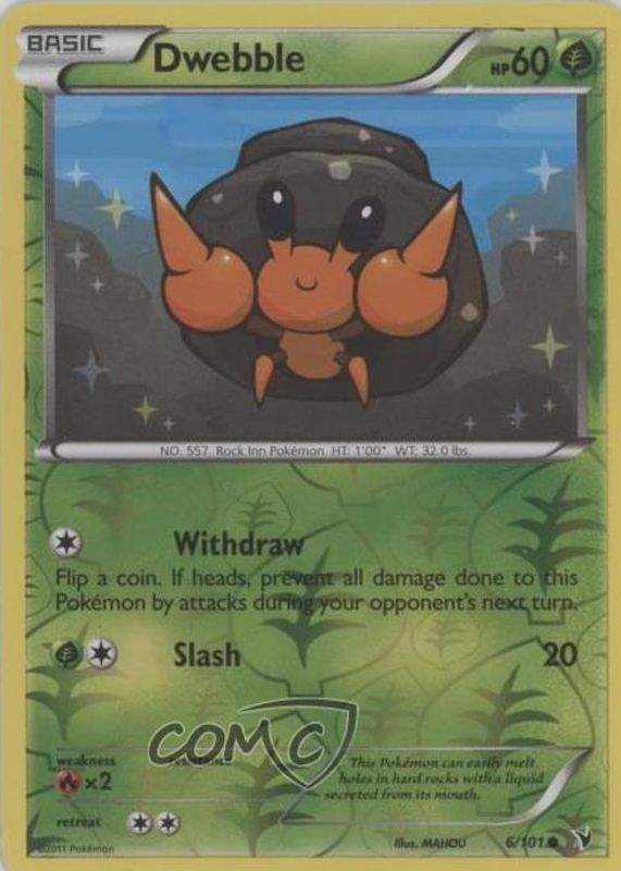 Dwebble 2011 Black & White: Noble Victories #006/101 Reverse Holo RAW TCG (LIGHTLY PLAYED) Price Guide
