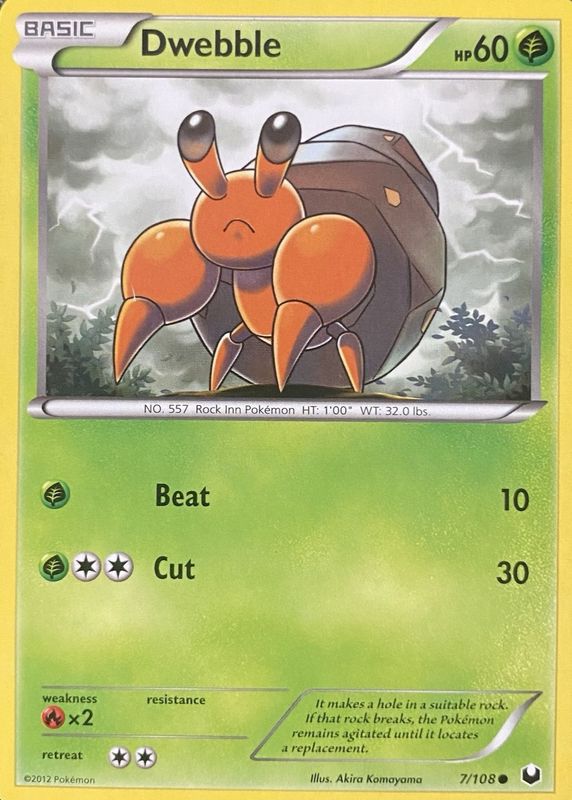 Dwebble 2012 Black & White: Dark Explorers #007/108 Base RAW TCG (NEAR MINT) Price Guide