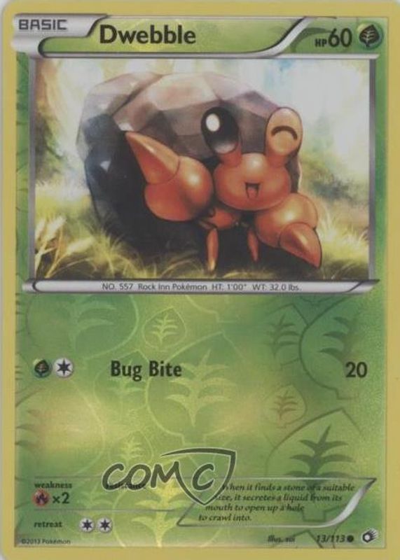 Dwebble 2013 Black & White: Legendary Treasures #013/113 Reverse Holo RAW TCG (LIGHTLY PLAYED) Price Guide