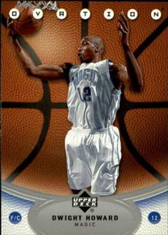 The Dwight Howard 2006 Upper Deck Ovation #58 Base /999 card is 1 of 4 Dwight Howard's card variations in the 2006 Upper Deck Ovation set being tracked by Sports Card Investor, including Gold /99, Center Stage, and Leading Performers.