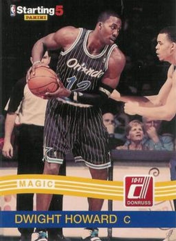 The Dwight Howard 2010 Donruss #DH Starting 5 card is 1 of 40 Dwight Howard's card variations in the 2010 Donruss set being tracked by Sports Card Investor, including Base, Emerald Die-Cut, Press Proof /100, Sapphire Die-Cut /49, and Ruby Die-Cut /25.
