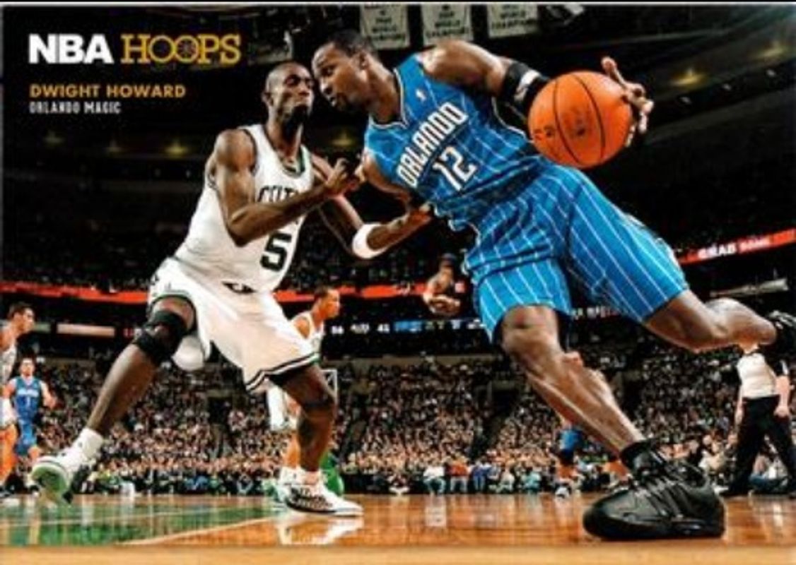The Dwight Howard 2012 Hoops #19 Courtside card is 1 of 14 Dwight Howard's card variations in the 2012 Hoops set being tracked by Sports Card Investor, including #300 Base, #164 Base, #164 Artist's Proofs, #300 Artist's Proofs, and #300 Glossy.