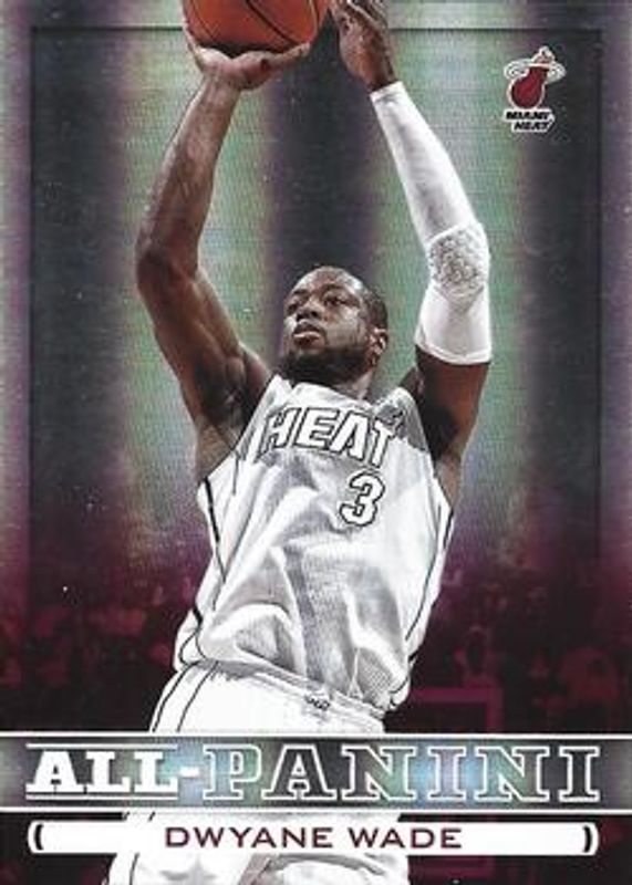 The Dwyane Wade 2013 Panini #5 All Panini card is 1 of 10 Dwyane Wade's card variations in the 2013 Panini set being tracked by Sports Card Investor, including Base, Gold Knights, Red Knights, Black Knights /1, and All Panini - Gold.