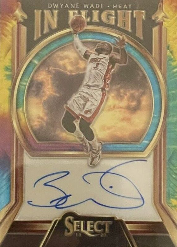This card is 1 of 6 Dwyane Wade's card variations in the 2019 Select set being tracked by Sports Card Investor, including In Flight Signatures (/49), In Flight Signatures - Neon Green (/25), In Flight Signatures - Tie-Dye (/15), In Flight Signatures - Neon Orange Pulsar /35, and In Flight Signatures - Gold /10.