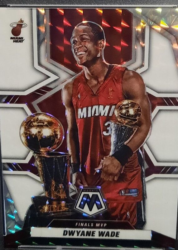 This card is 1 of 30 Dwyane Wade's card variations in the 2021 Mosaic set being tracked by Sports Card Investor, including Finals MVPs, Finals MVPs - Anniversary Edition, Finals MVPs - Fast Break, Finals MVPs - Gold Wave, and Finals MVPs - Green.