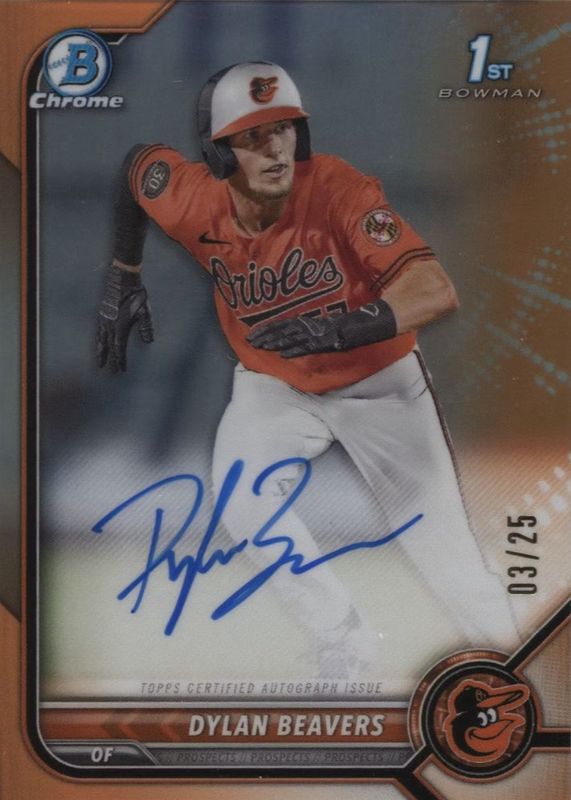 Dylan Beavers 2022 Bowman Draft #CDA-DB Chrome DP Auto - Orange Refractor /25 (1st) BGS 9 Price Guide