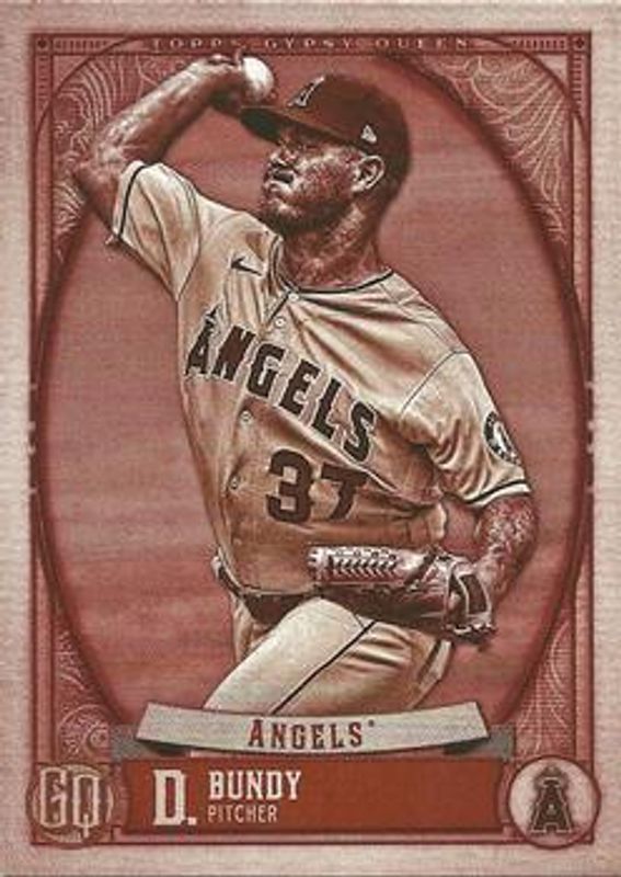 The Dylan Bundy 2021 Topps Gypsy Queen #17 Sepia /99 card is 1 of 13 Dylan Bundy's card variations in the 2021 Topps Gypsy Queen set being tracked by Sports Card Investor, including Base, Bazooka Back, Green, Missing Nameplate, and Team Script Font Swap.