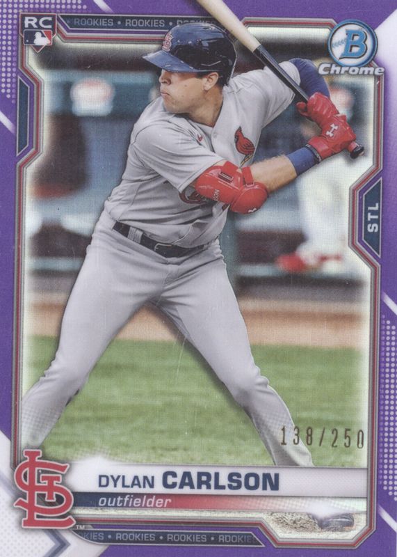 DYLAN CARLSON 2021 BOWMAN CHROME #45 RC ROOKIE PURPLE REFRACTOR /250 CARDINALS