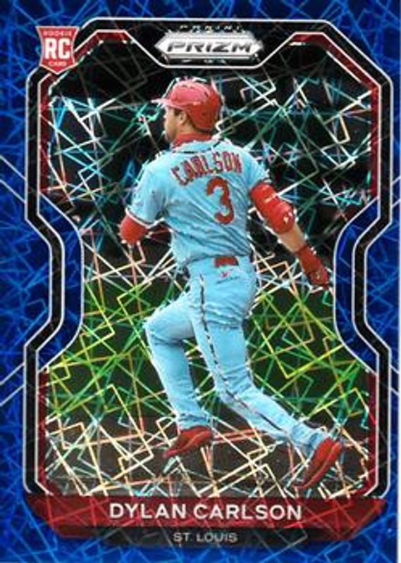 The Dylan Carlson 2021 Prizm #138 Blue Velocity Rookie card is 1 of 112 Dylan Carlson's card variations in the 2021 Prizm set being tracked by Sports Card Investor, including Base, Blue, Carolina Blue, Cosmic Haze, and Giraffe.