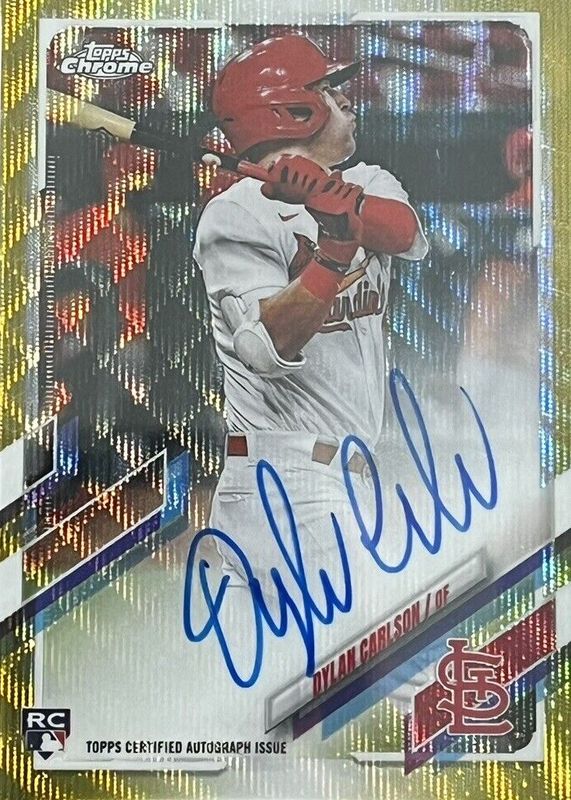Best Prices Available For Sale of Dylan Carlson 2021 Topps Chrome #RA-DC Rookie Auto - Gold Wave Refractor /50