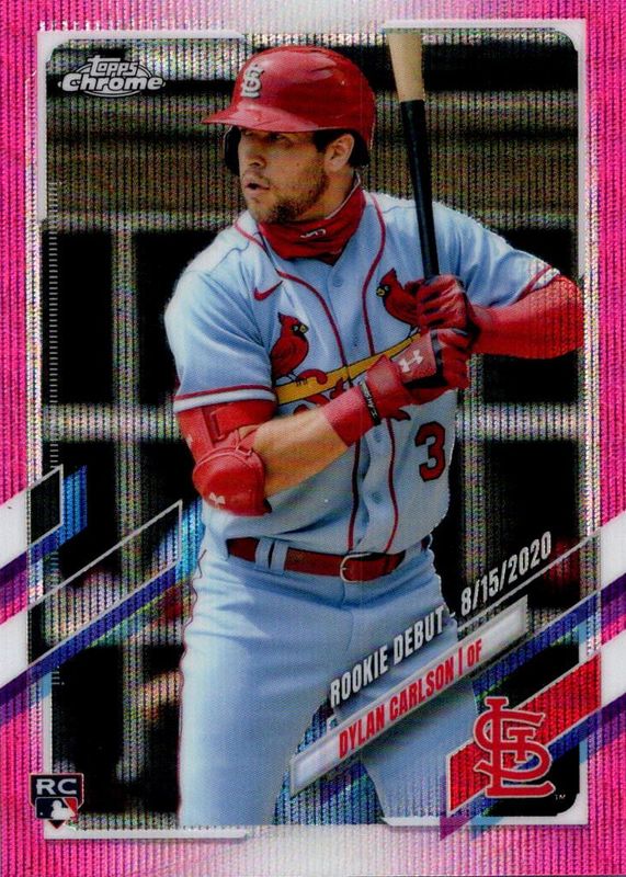 Best Prices Available For Sale of Dylan Carlson 2021 Topps Chrome Update #USC54 Rookie Debut - Pink Wave Refractor