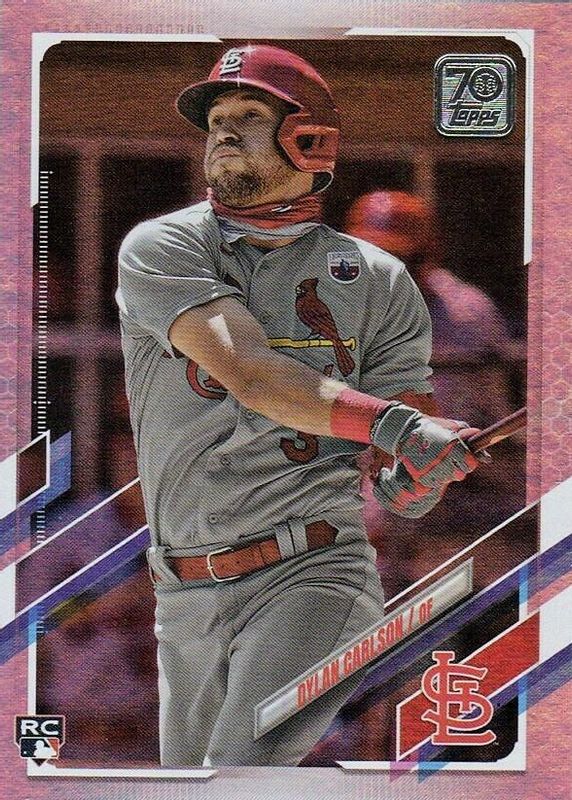 This card is 1 of 13 Dylan Carlson's card variations in the 2021 Topps set being tracked by Sports Card Investor, including Base, Gold Foil, Gold /2021, Green Foil /499, and Orange Foil /299.