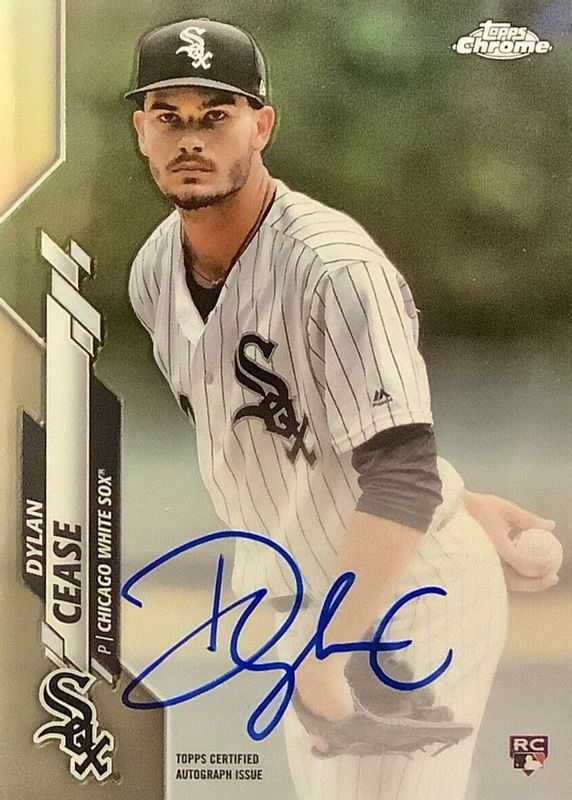 The Dylan Cease 2020 Topps Chrome #RA-DCE Rookie Auto - Refractor /499 card in Raw condition has moved down -$9.99 (-50.0%) in the last 30 days and was last sold for $10.00 .