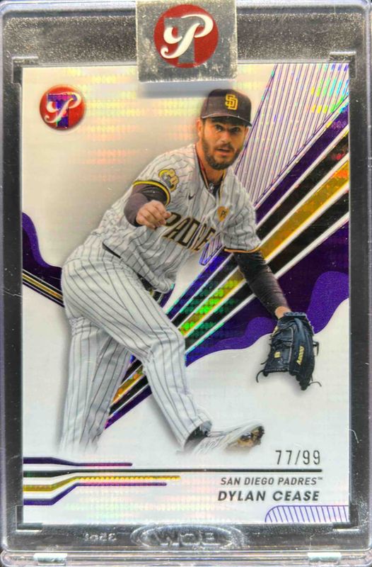 The Dylan Cease 2024 Topps Pristine #49 Pristine Purple Refractor /99 card is 1 of 18 Dylan Cease's card variations in the 2024 Topps Pristine set being tracked by Sports Card Investor, including Base, Pristine Refractor, Refractor, Green Refractor /150, and Purple Refractor /99.