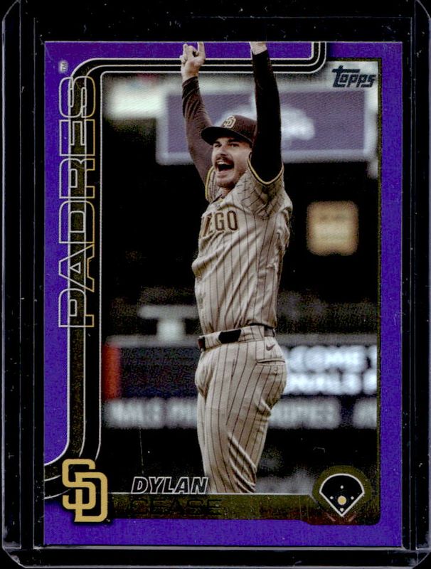 The Dylan Cease 2025 Topps #58 Purple Rainbow /250 card is 1 of 79 Dylan Cease's card variations in the 2025 Topps set being tracked by Sports Card Investor, including Base, Aqua Holo Foil, Diamante Foil, Holo Foil, and Pink Diamante Foil.