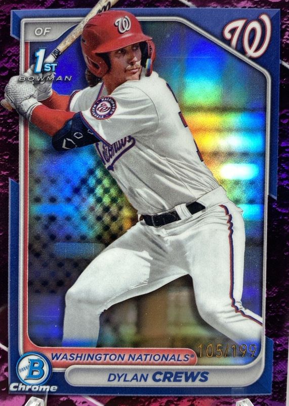 Best Prices Available For Sale of Dylan Crews 2024 Bowman #BCP-23 Chrome Prospects - Fuchsia Lunar Crater Refractor /199 (1st)