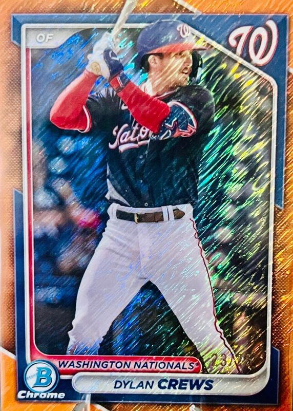 Best Prices Available For Sale of Dylan Crews 2024 Bowman Chrome #BCP-193 Prospects - Orange Shimmer Refractor /25