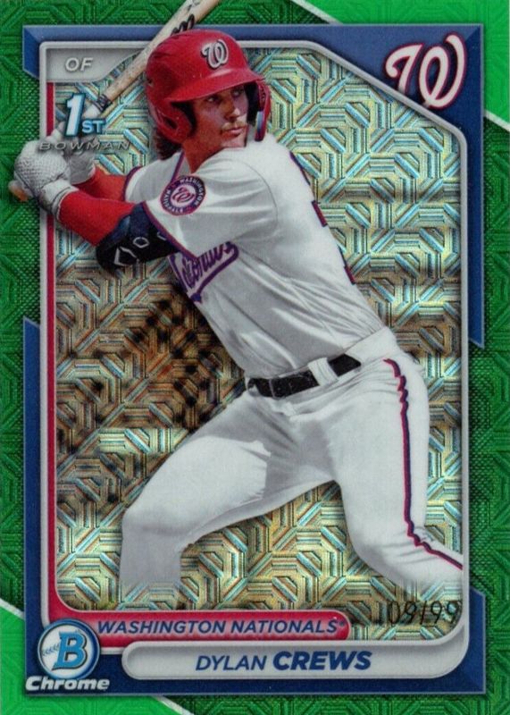 Best Prices Available For Sale of Dylan Crews 2024 Bowman Mega Box #BCP-23 Chrome Prospects - Green Refractor /99 (1st)