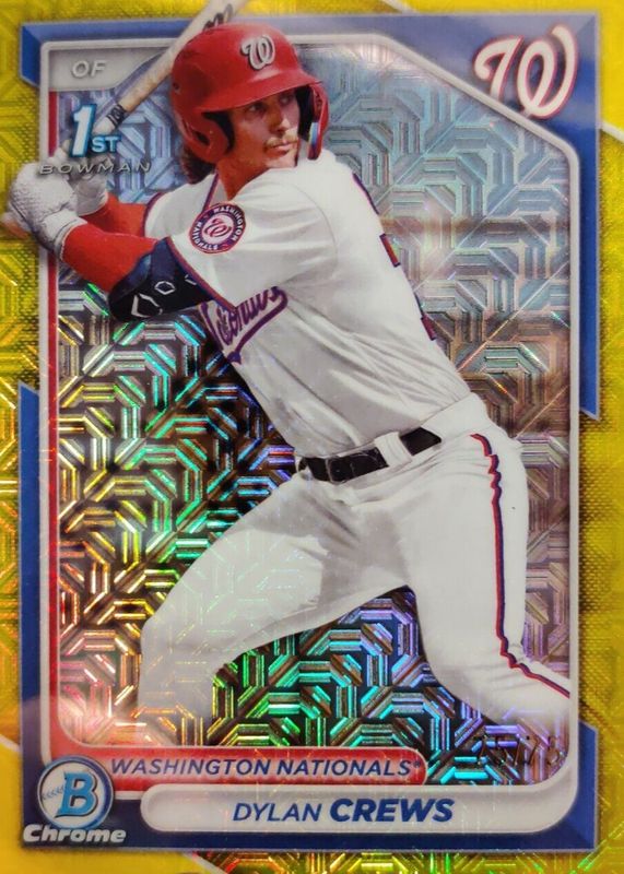 2024 Bowman Chrome Dylan Crews Yellow Mojo Refractor 1/75 1st Card!