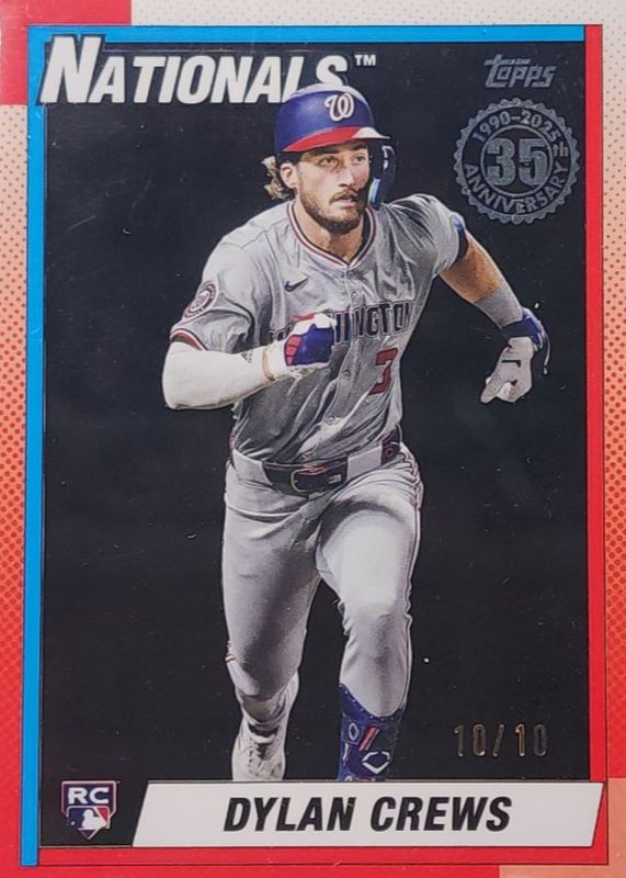 The Dylan Crews 2025 Topps #T90-89 1990 Topps Baseball - Black /10 Rookie card in Raw condition has not changed in price in the last 30 days and was last sold for $36.00 .