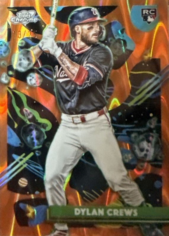 Best Prices Available For Sale of Dylan Crews 2025 Topps Chrome Cosmic #194 Orange Galactic Refractor /25