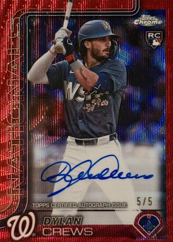 Best Prices Available For Sale of Dylan Crews 2025 Topps Chrome #RA-DC Rookie Autographs - Red Wave Refractor /5