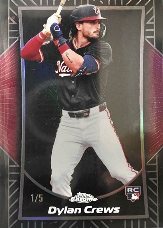 This card is 1 of 180 Dylan Crews' card variations in the 2025 Topps Chrome set being tracked by Sports Card Investor, including Base, Geometric Refractor, Image Variation, Lightboard Logo Variation, and Negative Refractor.