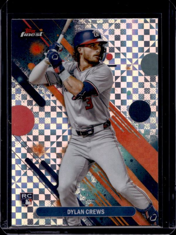 The Dylan Crews 2025 Topps Finest #34 Base Common - Oil Spill Refractor Rookie card is 1 of 171 Dylan Crews' card variations in the 2025 Topps Finest set being tracked by Sports Card Investor, including Common, Rare, Uncommon, Common - Checkerboard Refractor, and Common - Refractor.