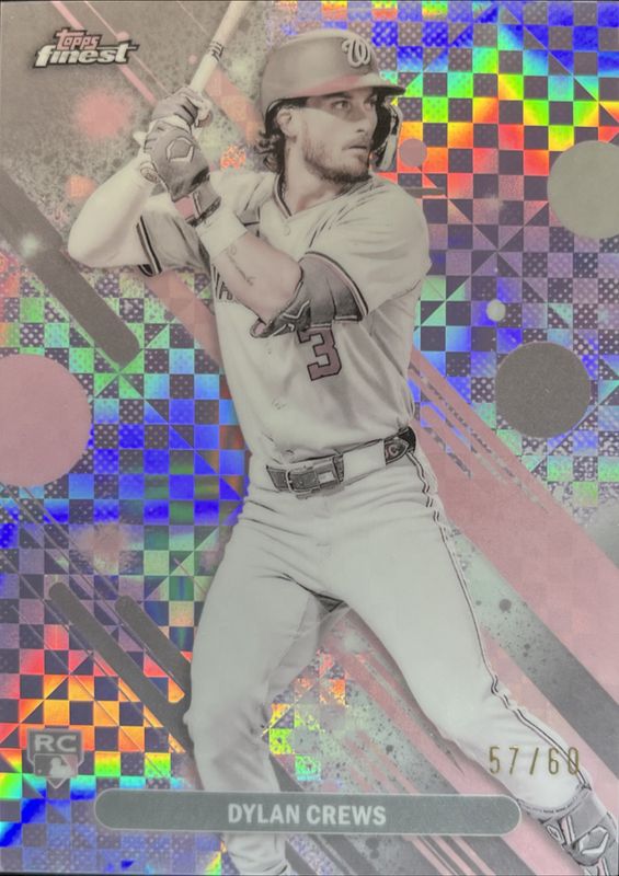 The Dylan Crews 2025 Topps Finest #34 Base Common - Pearl X-Fractor /60 Rookie card is 1 of 171 Dylan Crews' card variations in the 2025 Topps Finest set being tracked by Sports Card Investor, including Common, Rare, Uncommon, Common - Checkerboard Refractor, and Common - Refractor.