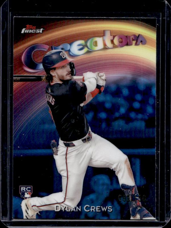 The Dylan Crews 2025 Topps Finest #C-11 Creators - Sky Blue Refractor /150 Rookie card is 1 of 171 Dylan Crews' card variations in the 2025 Topps Finest set being tracked by Sports Card Investor, including Common, Rare, Uncommon, Common - Checkerboard Refractor, and Common - Refractor.