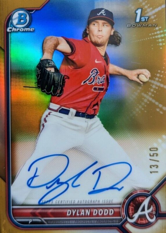 2022 Bowman Chrome Dylan Dodd Gold Refractor Auto /50 Braves #CPA-DD Autograph