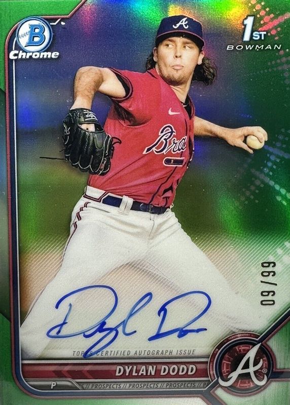 2022 Bowman Chrome Dylan Dodd Green Refractor Auto #/99 1st Bowman Braves