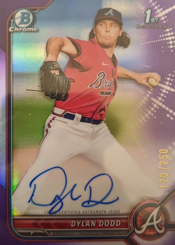 2022 Bowman Chrome - Dylan Dodd 1st Chrome Purple Refractor Auto #'d /250 BRAVES