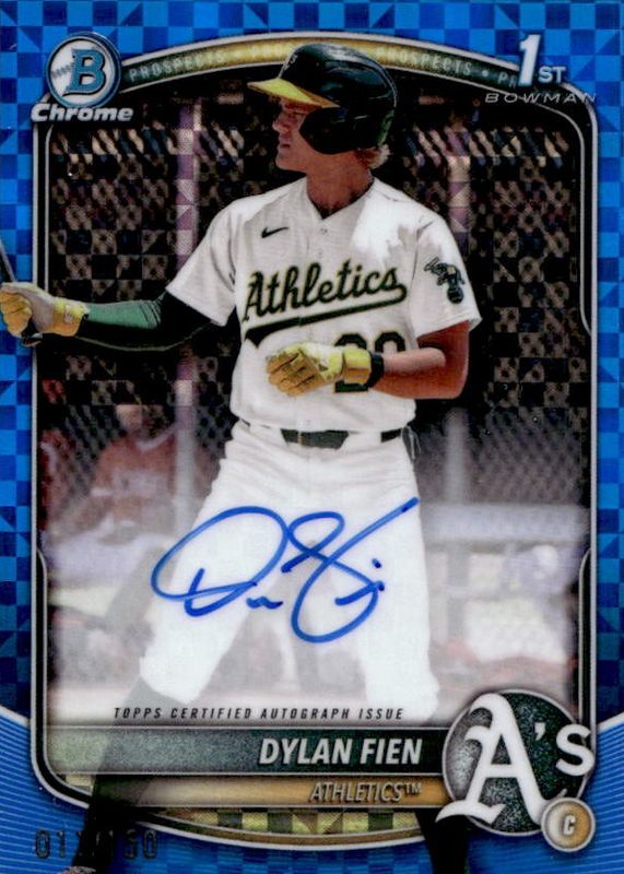 DYLAN FIEN 2025 BOWMAN CHROME 1ST AUTOGRAPH BLUE X-FRACTOR AUTO /150🔥🔥 A's