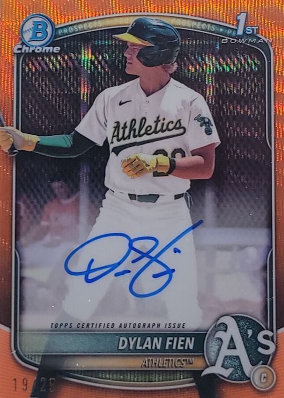 DYLAN FIEN 2025 BOWMAN CHROME 1ST ORANGE WAVE A'S AUTO 01/25 Q4534