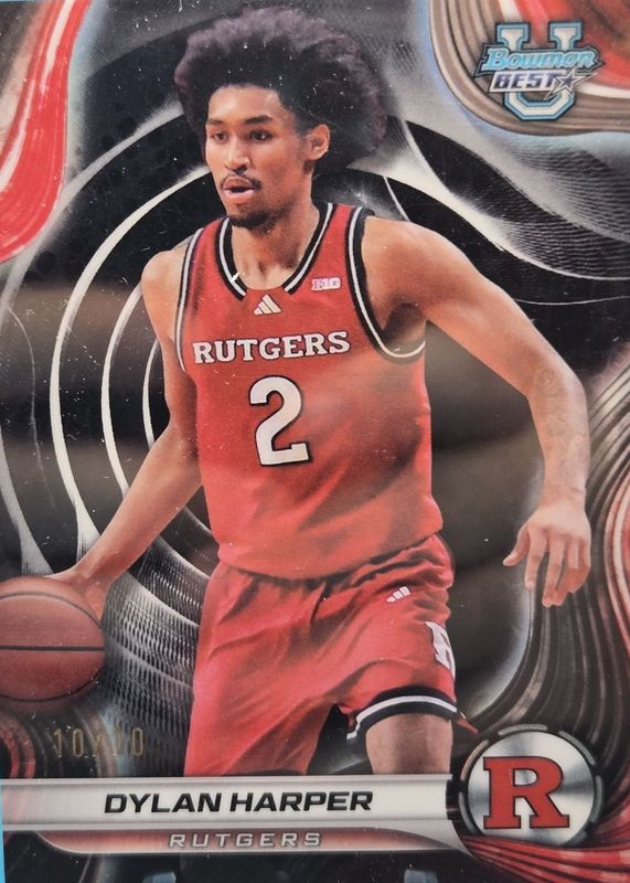 This card is 1 of 36 Dylan Harper's card variations in the 2024 Bowman Best University set being tracked by Sports Card Investor, including Base, Geometric Refractor, Refractor, Shimmer Refractor, and Purple Refractor /250.