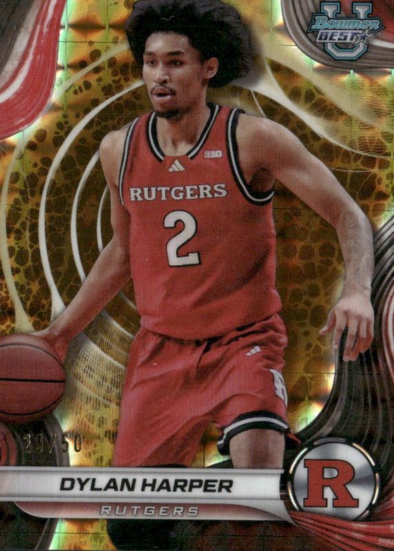 This card is 1 of 36 Dylan Harper's card variations in the 2024 Bowman Best University set being tracked by Sports Card Investor, including Base, Geometric Refractor, Refractor, Shimmer Refractor, and Purple Refractor /250.