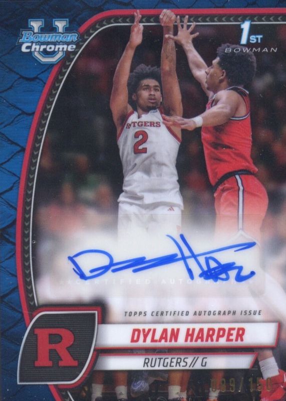 2024-25 Bowman U Chrome Dylan Harper Blue Reptilian /150 AUTO #22 Rutgers RC
