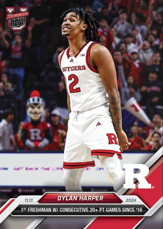 2024-25 BOWMAN U NOW CARD RUTGERS UNIVERSITY DYLAN HARPER #8 CONSECTUTIVE 20 PTS