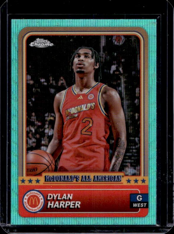 The Dylan Harper 2024 Topps Chrome McDonald's All-American #38 Aqua Wave Refractor /199 card is 1 of 112 Dylan Harper's card variations in the 2024 Topps Chrome McDonald's All-American set being tracked by Sports Card Investor, including #88 Base, #38 Base, #38 Blue RayWave Refractor, #88 Blue RayWave Refractor, and #38 McDonald's Logo Refractor.