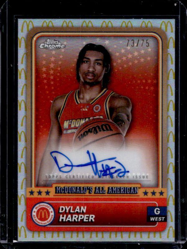 The Dylan Harper 2024 Topps Chrome McDonald's All-American #88 Base Autographs - McDonald's Logo Refractor /75 card is 1 of 112 Dylan Harper's card variations in the 2024 Topps Chrome McDonald's All-American set being tracked by Sports Card Investor, including #88 Base, #38 Base, #38 Blue RayWave Refractor, #88 Blue RayWave Refractor, and #38 McDonald's Logo Refractor.