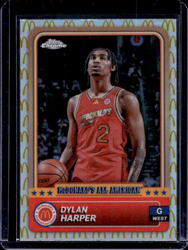 The Dylan Harper 2024 Topps Chrome McDonald's All-American #38 McDonald's Logo Refractor card is 1 of 112 Dylan Harper's card variations in the 2024 Topps Chrome McDonald's All-American set being tracked by Sports Card Investor, including #88 Base, #38 Base, #38 Blue RayWave Refractor, #88 Blue RayWave Refractor, and #88 McDonald's Logo Refractor.