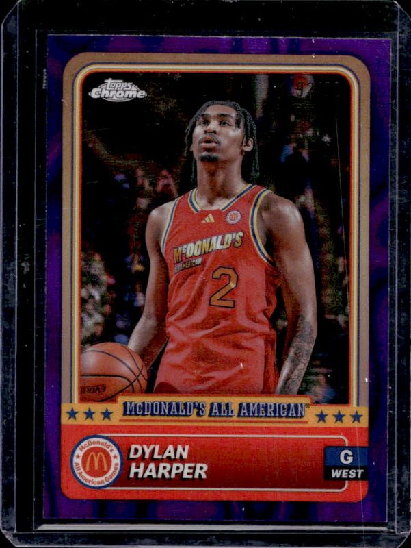 The Dylan Harper 2024 Topps Chrome McDonald's All-American #38 Purple Lava Refractor /99 card is 1 of 112 Dylan Harper's card variations in the 2024 Topps Chrome McDonald's All-American set being tracked by Sports Card Investor, including #88 Base, #38 Base, #38 Blue RayWave Refractor, #88 Blue RayWave Refractor, and #38 McDonald's Logo Refractor.
