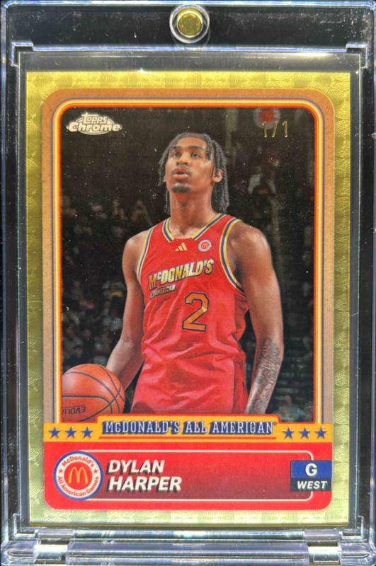 The Dylan Harper 2024 Topps Chrome McDonald's All-American #38 Superfractor /1 card is 1 of 112 Dylan Harper's card variations in the 2024 Topps Chrome McDonald's All-American set being tracked by Sports Card Investor, including #88 Base, #38 Base, #38 Blue RayWave Refractor, #88 Blue RayWave Refractor, and #38 McDonald's Logo Refractor.