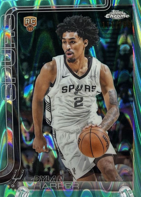 The Dylan Harper 2025 Topps Chrome #252 Aqua RayWave Refractor /199 Rookie card in Raw condition has moved down -$15.00 (-16.7%) in the last 30 days and was last sold for $75.00 .