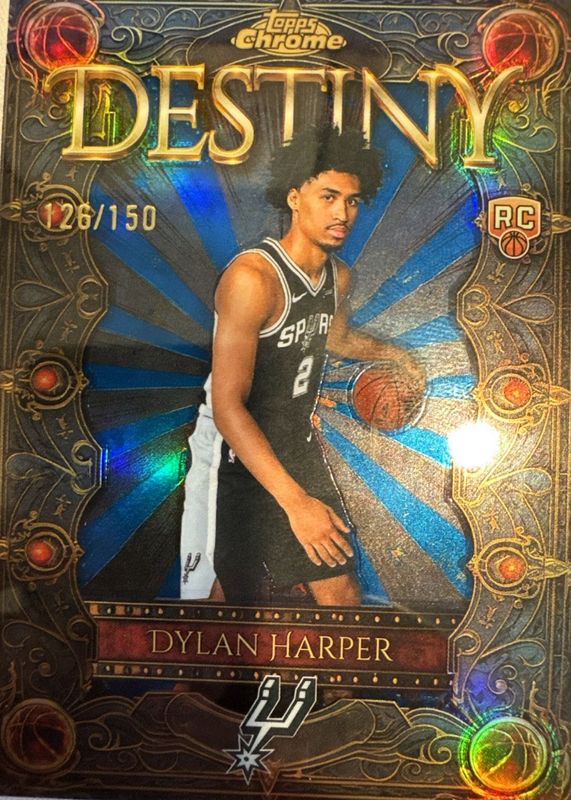 The Dylan Harper 2025 Topps Chrome #D-2 Destiny - Blue Refractor /150 Rookie card in Raw condition has moved up $2.99 (+12.0%) in the last 30 days and was last sold for $27.99 .