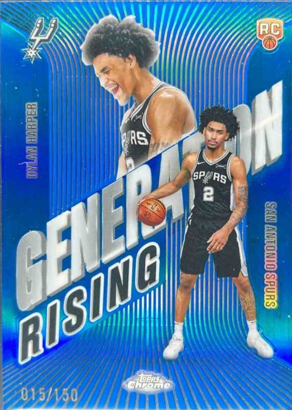 The Dylan Harper 2025 Topps Chrome #GR-2 Generation Rising - Blue Refractor /150 Rookie card in Raw condition has moved up $9.65 (+52.2%) in the last 30 days and was last sold for $28.14 .