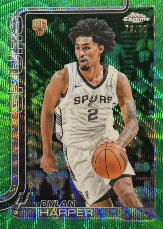 The Dylan Harper 2025 Topps Chrome #252 Green Wave Refractor /99 Rookie card in Raw condition has moved up $12.24 (+10.4%) in the last 30 days and was last sold for $129.99 .