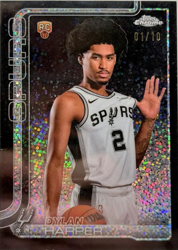 The Dylan Harper 2025 Topps Chrome #252 Image Variation - Black Speckle Refractor /10 Rookie card in Raw condition has not changed in price in the last 30 days and was last sold for $1,299.98 .