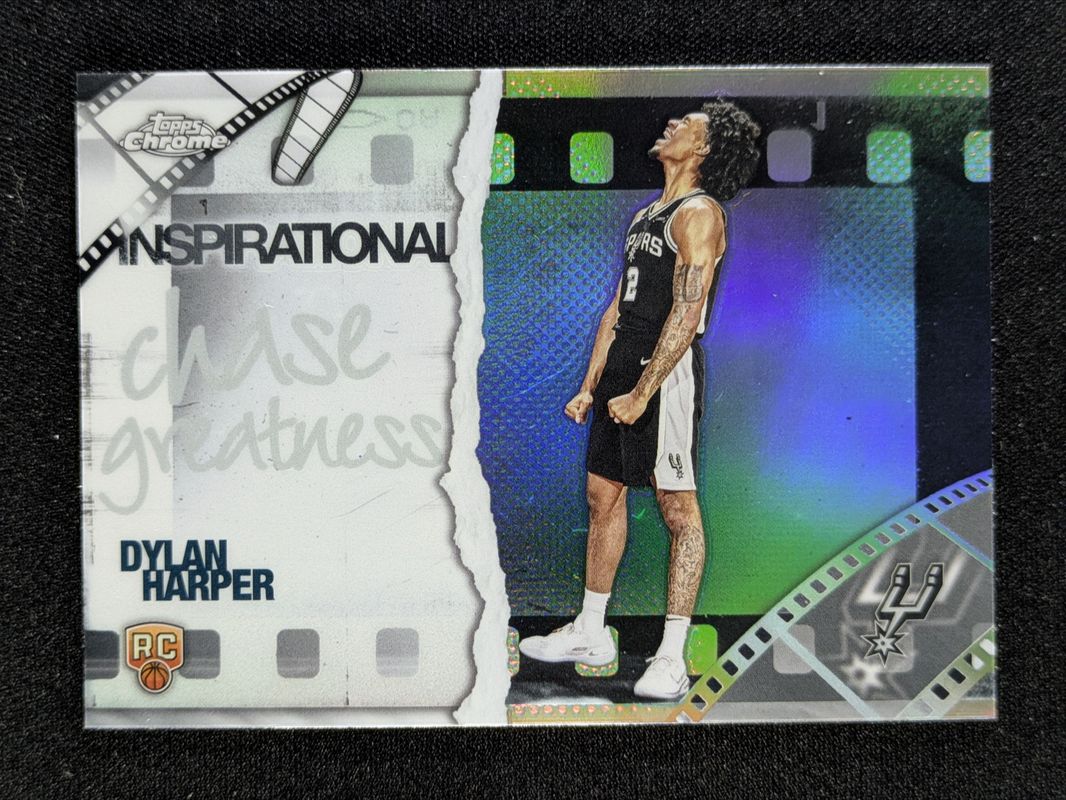 The Dylan Harper 2025 Topps Chrome #IP-19 Inspirational - Refractor Rookie card is 1 of 411 Dylan Harper's card variations in the 2025 Topps Chrome set being tracked by Sports Card Investor, including Base, Basketball Refractor, Box Set Refractor, Image Variation, and Lightboard Logo Refractor.